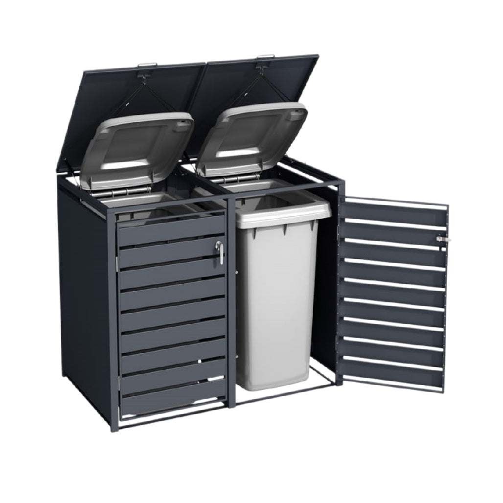 ゴミ収集ボックス 二つの容器用 屋外使用 対候性素材 - 120 x 80 x 100